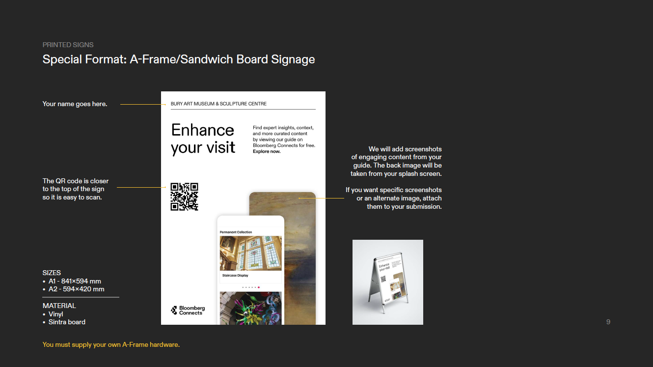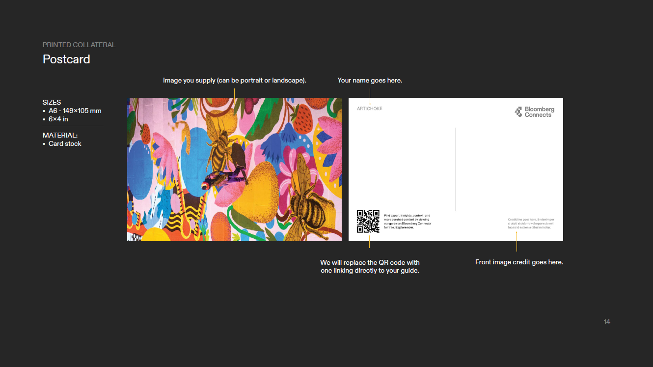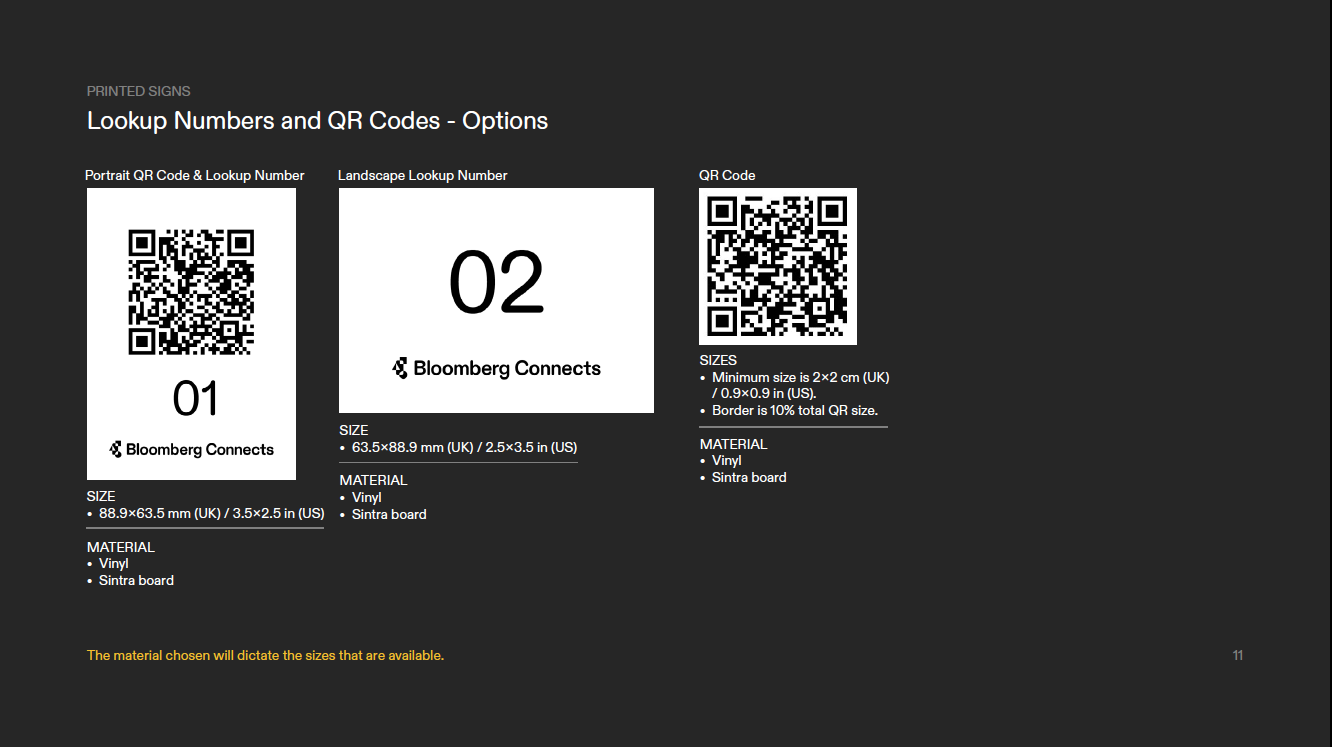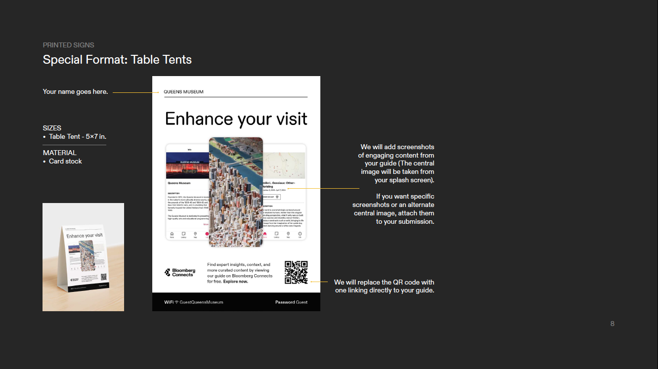 The Bloomberg Connects team can reprint materials we have already designed and delivered to you.