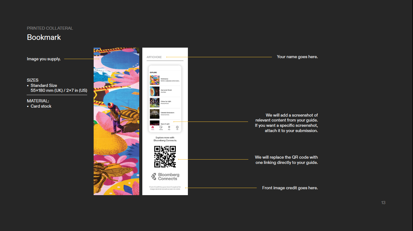 The Bloomberg Connects Marketing team provides a variety of design and production services free of charge to support your organization in your efforts to promote your Bloomberg Connects guide.