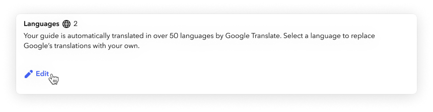 - If you are editing the draft version of your guide, publish your draft to expose your translations (overwriting the automated Google Translate translations where relevant).