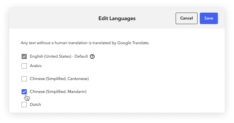 In the Edit Languages window that appears, select the language(s) for which you have provided translated content.