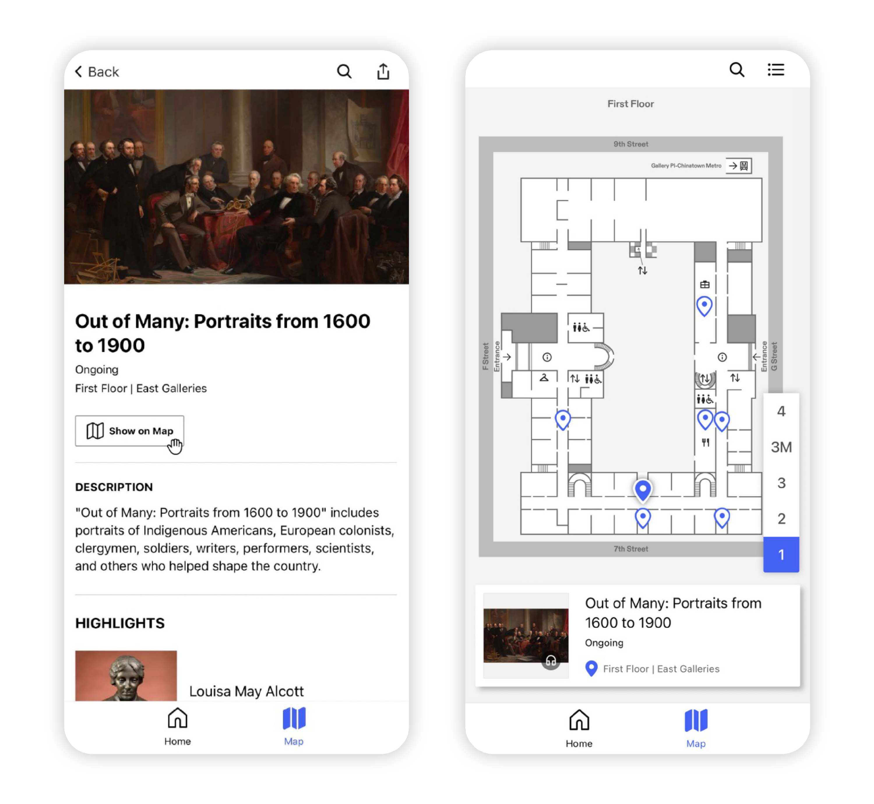 - Pins: Create pins to represent specific locations, then add content to the pins to help visitors get around. For more, see Map pins.
