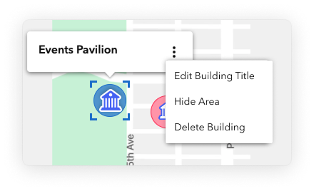 To update a building pin, click the more actions menu (⫶) next to the pin name, then make a selection: