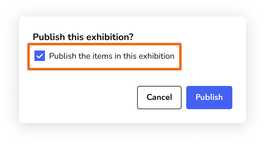 By default, when you publish or unpublish an Exhibition or Tour, we assume that you want to publish or unpublish all included Items as well.
